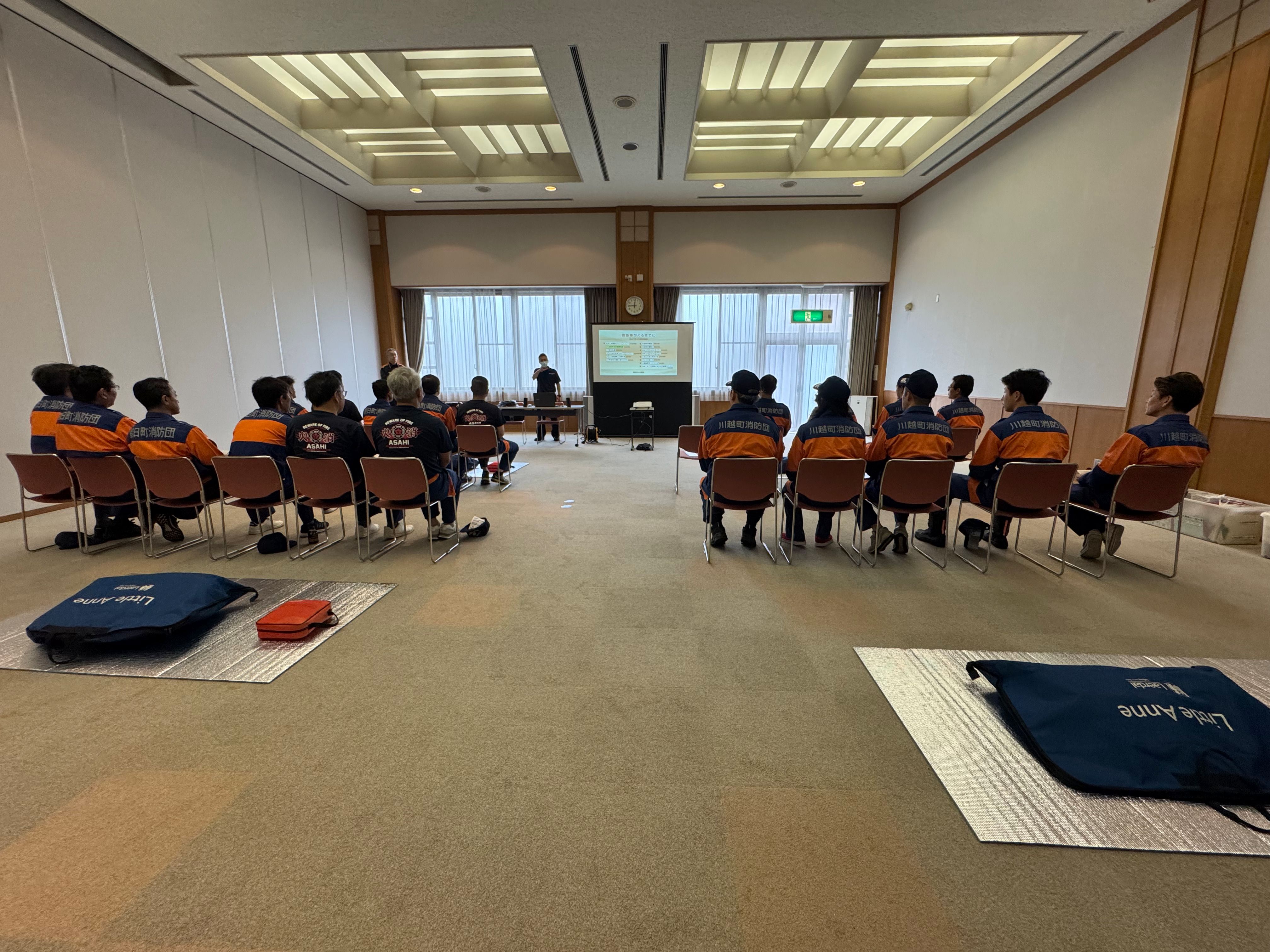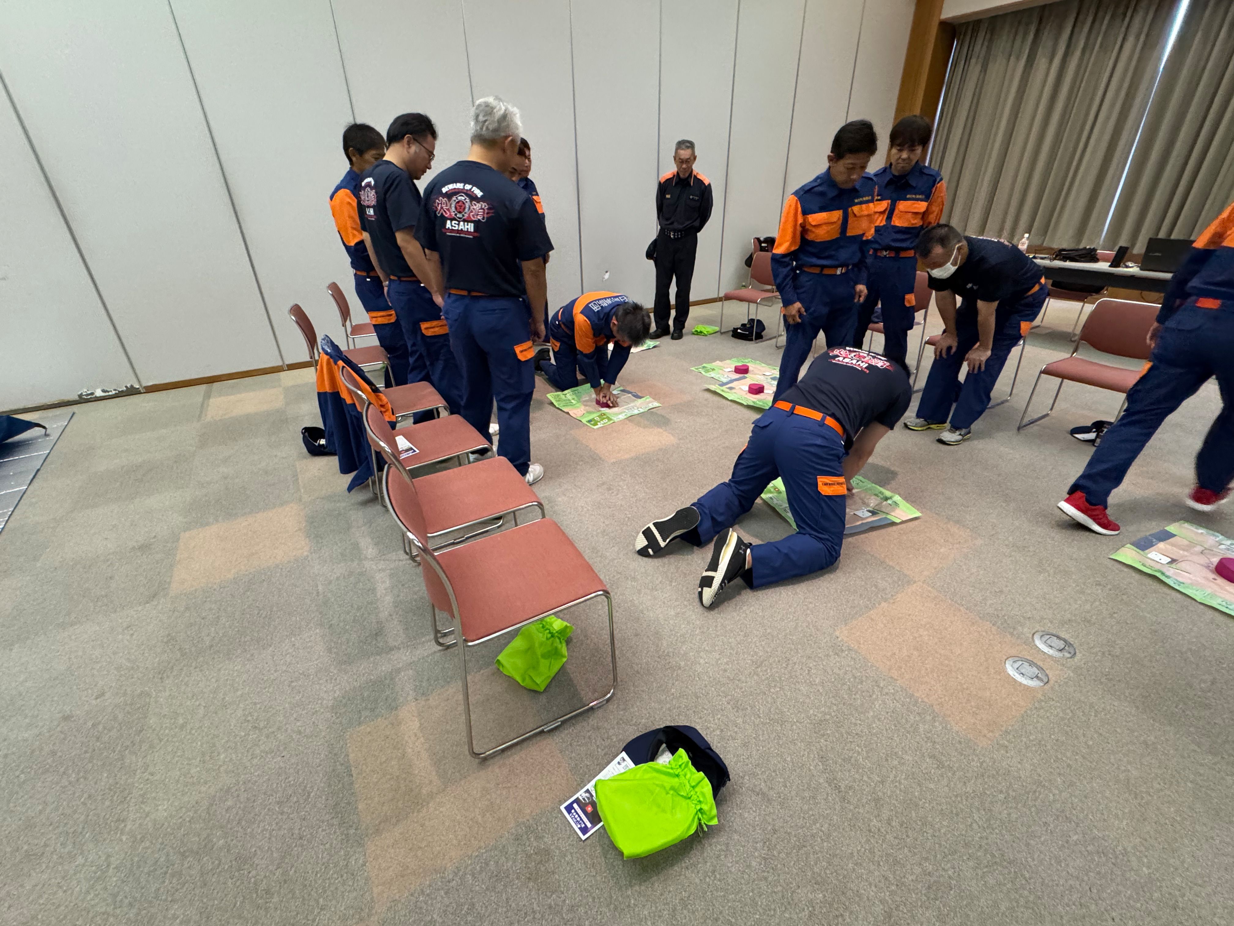 参加した団員は、心肺蘇生法、AED、異物除去法、止血法を含む応急手当を身につけるため、懸命に取り組んでいました。
