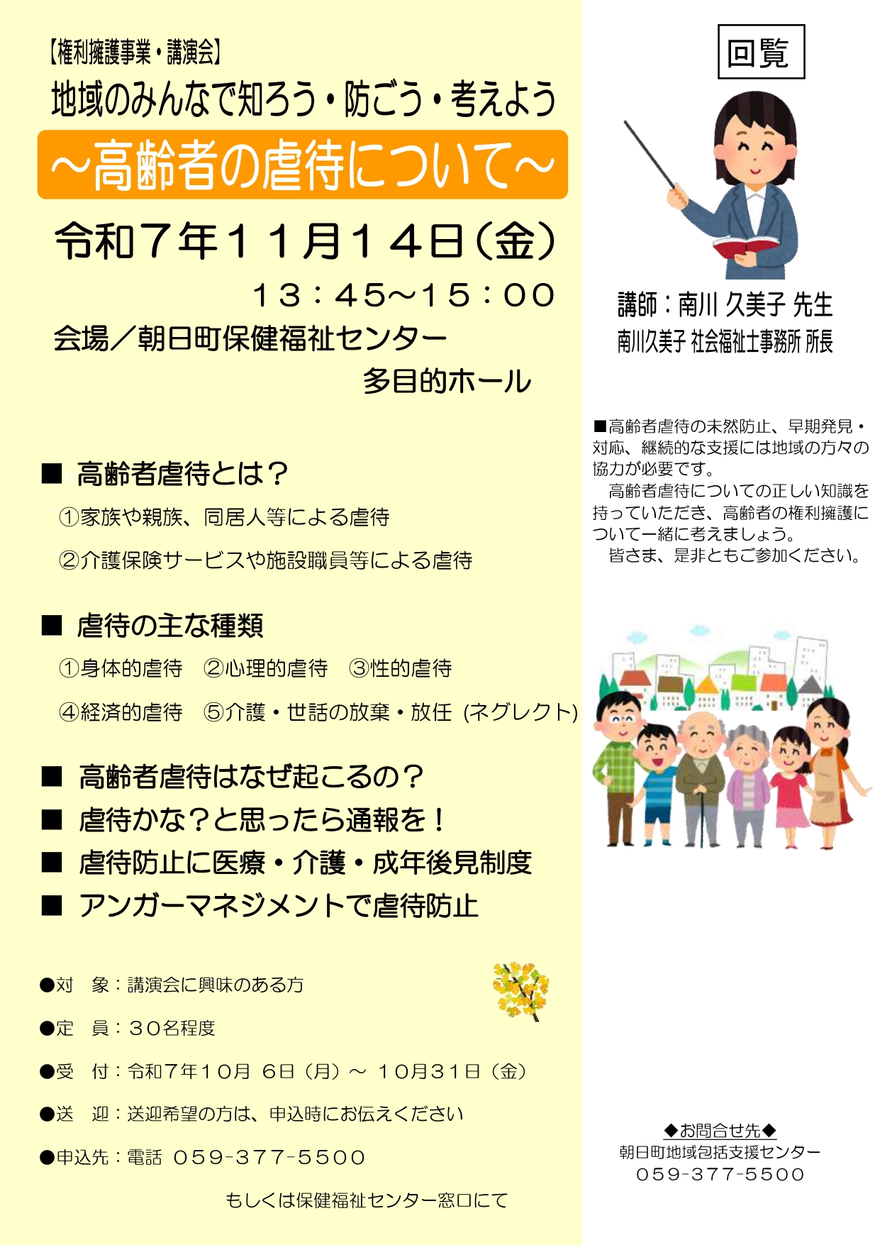 トップページ 暮らしの情報 行政情報 広報・広聴 回覧 令和7年 9月 【権利擁護事業・講演会】~高齢者の虐待について
