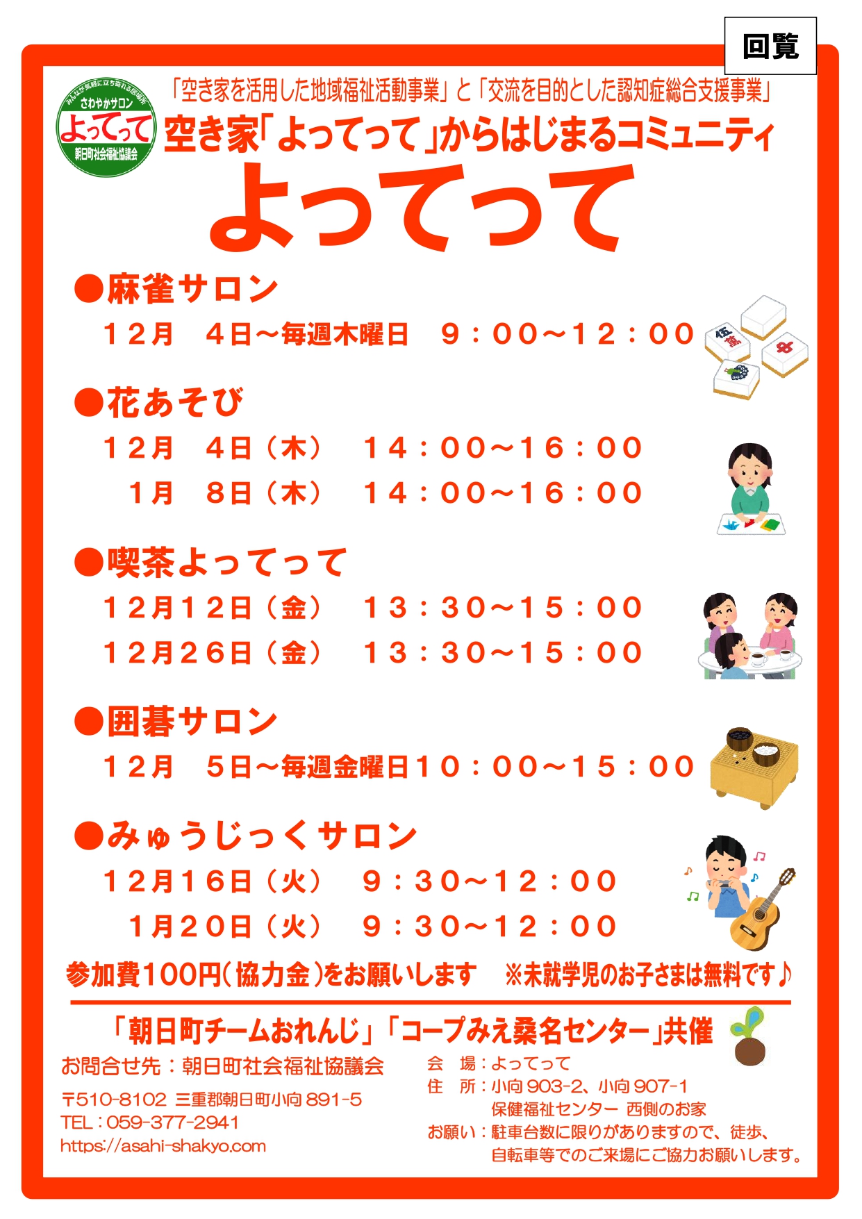トップページ 暮らしの情報 行政情報 広報・広聴 回覧 令和7年 11月さわやかサロン よってって