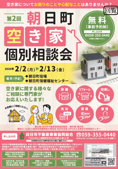 トップページ 暮らしの情報 行政情報 広報・広聴 回覧 令和8年 1月第2回朝日町空き家個別相談会
