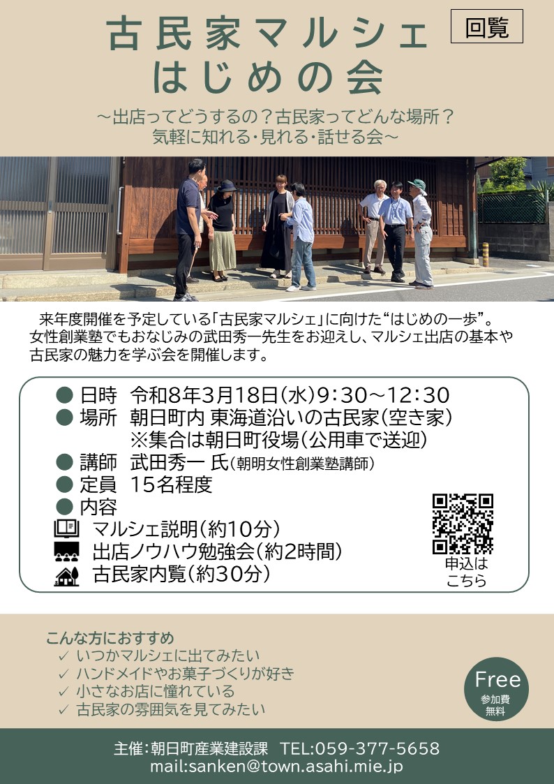 トップページ 暮らしの情報 行政情報 広報・広聴 回覧 令和8年 2月古民家マルシェはじめの会のご案内